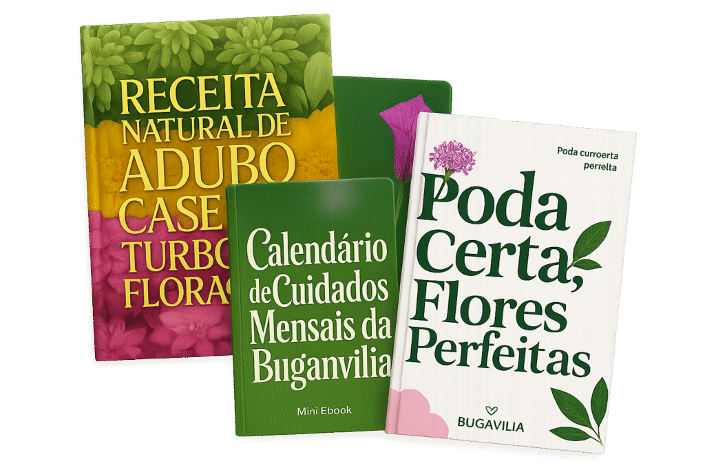 Garantindo hoje seu acesso ao Método Raiz Rápida , você irá garantir 3 incríveis bônus: “Poda Certa, Flores Perfeitas”, “Calendário de Cuidados Mensais da Buganvília” e “Receita Natural de Adubo Caseiro Turbo de Floração” de forma TOTALMENTE gratuita!